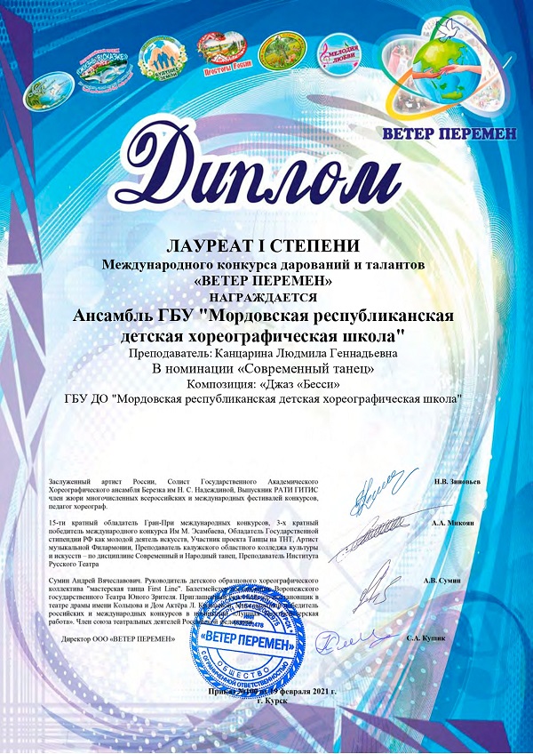 Министерство культуры, национальной политики, туризма и архивного дела Республики Мордовия.Государственное бюджетное учреждение дополнительного образования "Мордовская республиканская детская хореографическая школа"